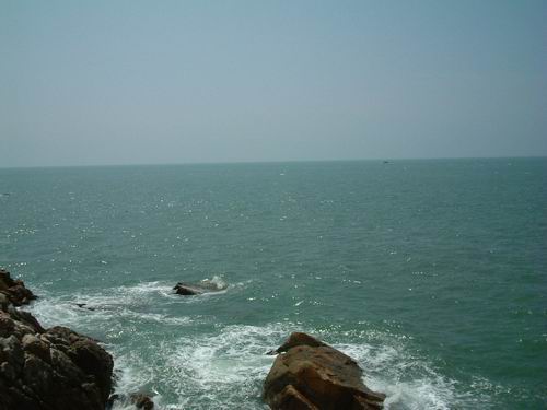 后岩石上,有“升天古迹”、“观澜”等石刻。站在石上,顾盼茫茫大海,白鸥掠波,舟楫穿梭;水中有山,山外有海,山海相衔,海天相接。庙前岩岸海床有大片辉绿岩,受风涛冲蚀,形成天然凹槽,潮汐吞吐之声,由远而近,初似管弦细响,继如钟鼓齐鸣,再若龙吟虎啸,终则象巨雷震天,骤雨泻地。扣人心弦的“湄屿潮音”因而弛名。湄洲岛与忠门半岛的文甲码头之间有渡船往返。岛上有天宫大酒店和新建的湄洲大洒店、湄洲宾馆等。